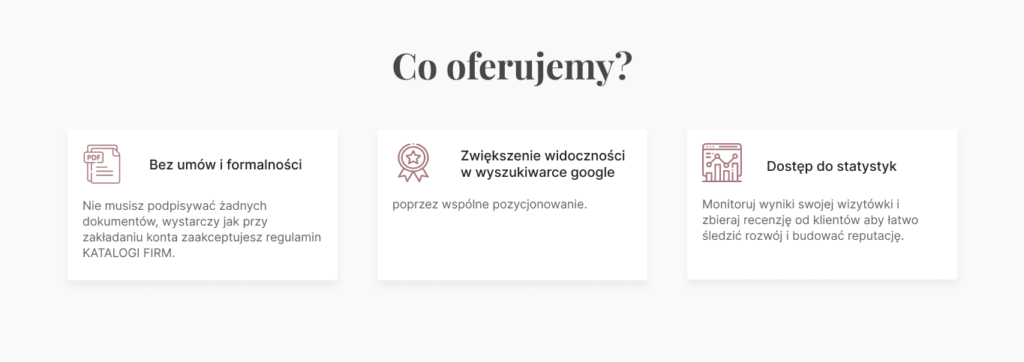 3. How it works? – This section describes the steps that a user must take in order to present their offer on the Website. It shows how easy the platform is to operate and how little work it takes to present an offer. Important elements of the offer that the user can present are also placed here.
