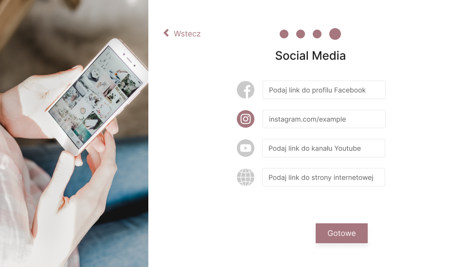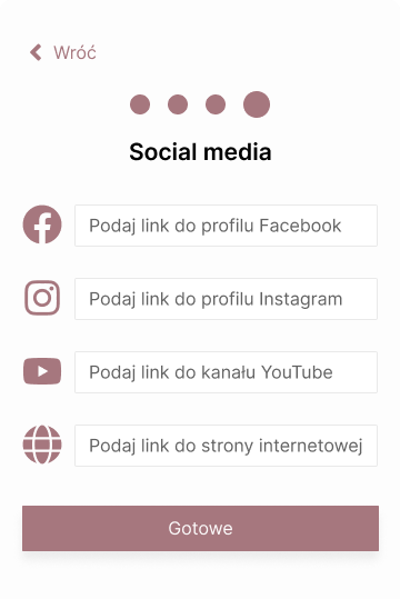 The final step involves providing links to social media and website. Bridal couples often want to see not only the offers in the company directory, but also on social media, where they can see more photos, reviews or comments. Users can specify as many links as they like, but do not need to specify them if they have not created a profile on these pages or are unwilling to share them.